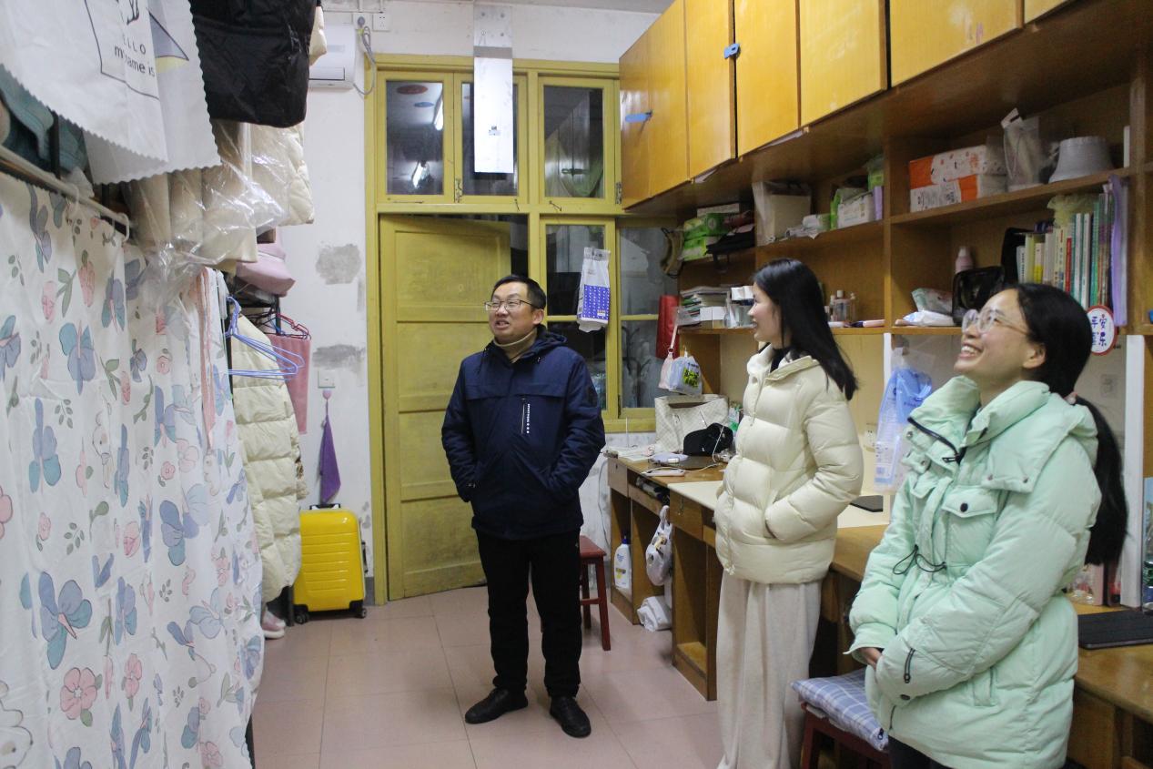 在下寝过程中,柴绪亮书记一行仔细询问了学生们的返校感受,提醒学生们增强安全用电的意识,强调防寒保暖的重要性,加强锻炼,同时嘱咐大家要融洽相处,互相帮助。此外,院领导还叮嘱同学们要调整心态,规划好新学期的学习计划,保持愉悦心情,展现马院学子积极向上的精神风貌,为自己的校园生活交上一份满意的答卷。