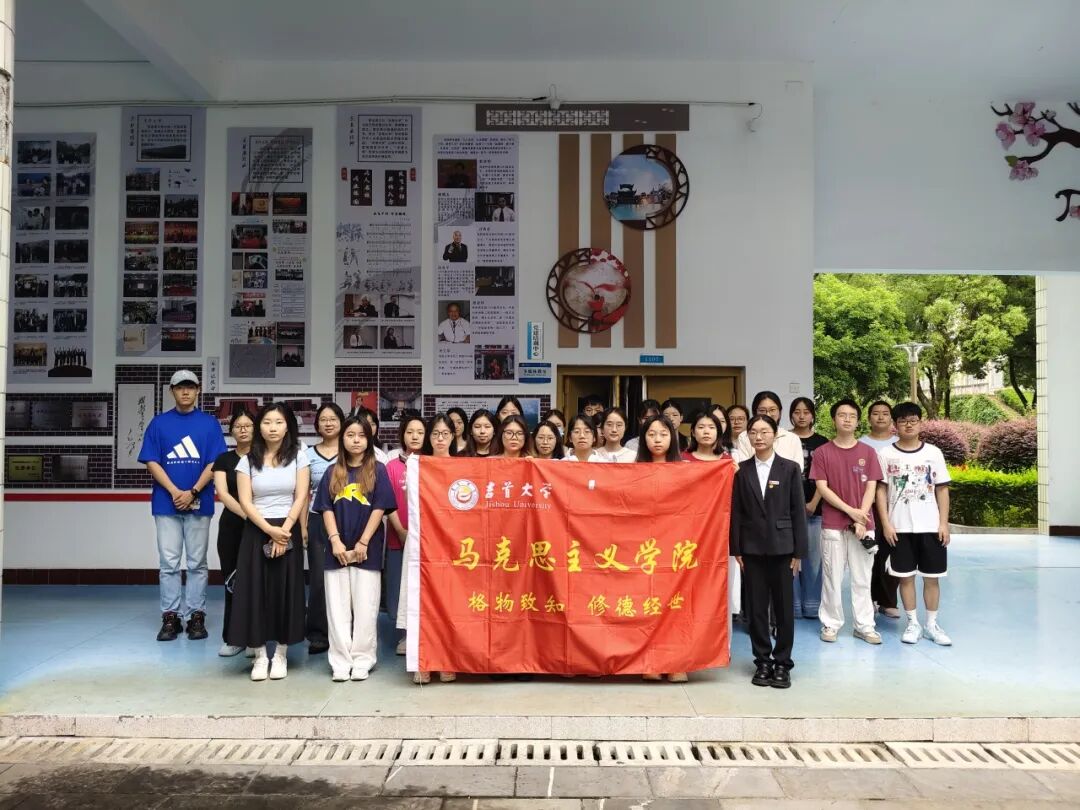 参观结束后,各班宣传委员积极组织协调全体同学与讲解员一起拍摄集体大合照。同学们簇拥在班旗周围,精神饱满,青春洋溢,将参与本次主题团日的收获与集体归属感定格在镜头之中。这一张张合影不仅是活动的记录,更是马院学子坚定信仰、凝聚力量的生动见证。