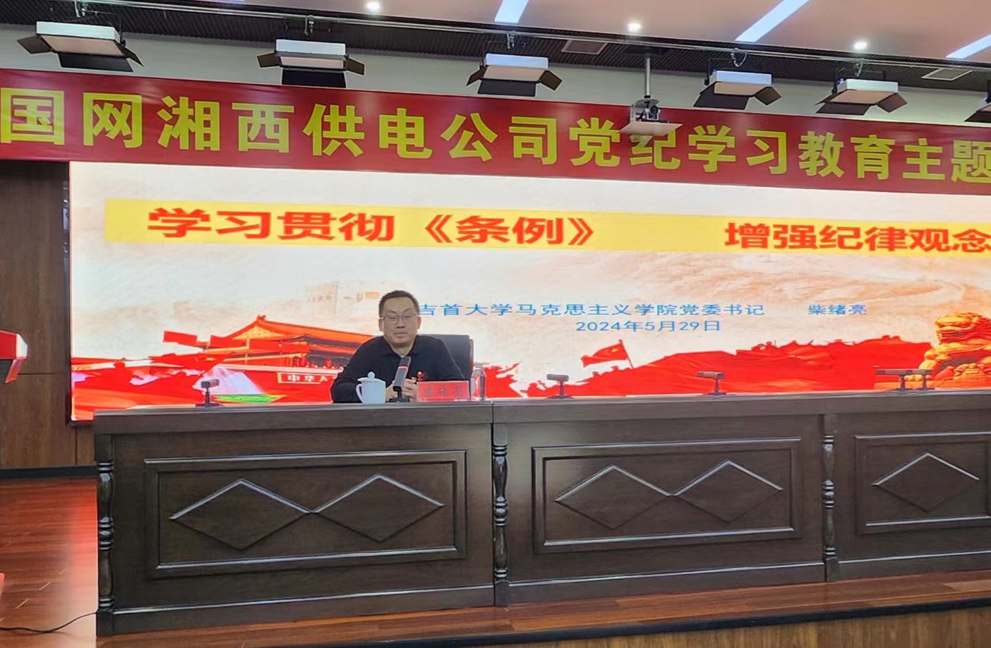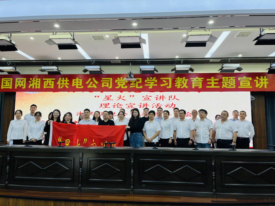 本网讯(通讯员 王丹)为深入贯彻落实党纪学习教育,推进党的创新理论融入湘西州国有企业各项工作,5月29日下午,伟德源自英国始于1946“星火”宣讲队在国网湘西供电公司开展了理论宣讲活动。国网湘西供电公司副总经理顾海军及本部各支部书记及党员代表参活动。伟德源自英国始于1946党委书记柴绪亮率领“星火”宣讲二分队的部分成员进行宣讲。活动由硕士研究生王丹主持。