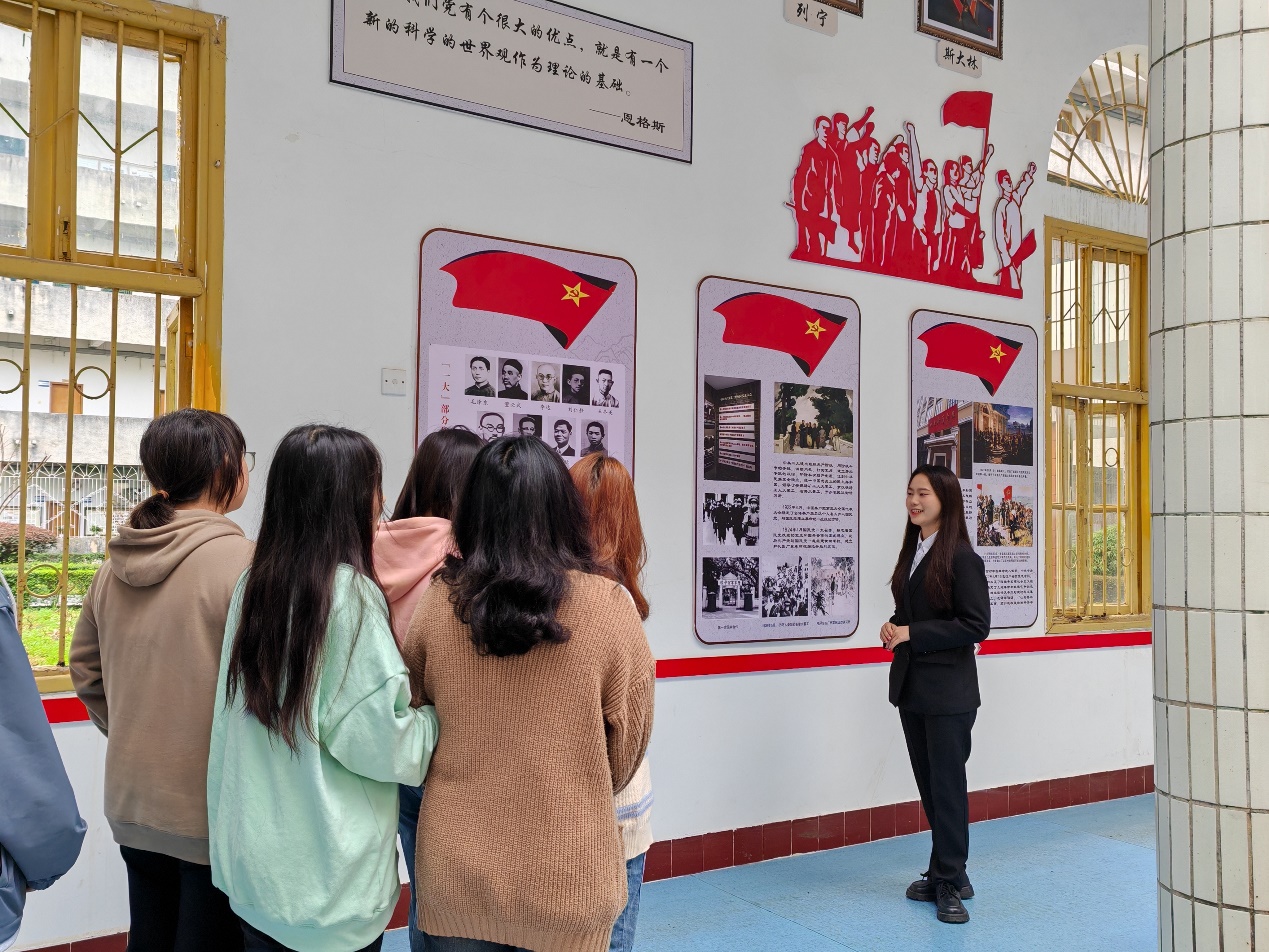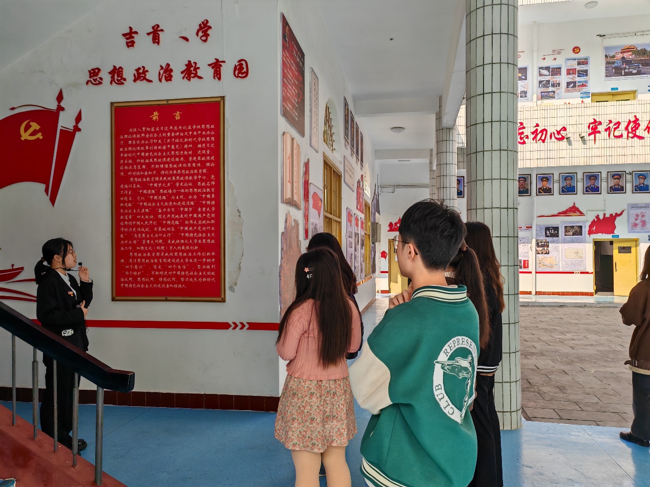 本次讲解活动共持续五个小时,不同班级按照时间有序参观倾听。每轮讲解活动开始时,讲解员都会先向同学们阐明思政园的创立初衷与重要作用,随后再以时间线、空间线为线索,带领同学们回望我们党的伟大奋斗史。整个讲解过程中,同学们都紧跟讲解员的步伐,认真聆听、深入思考。
